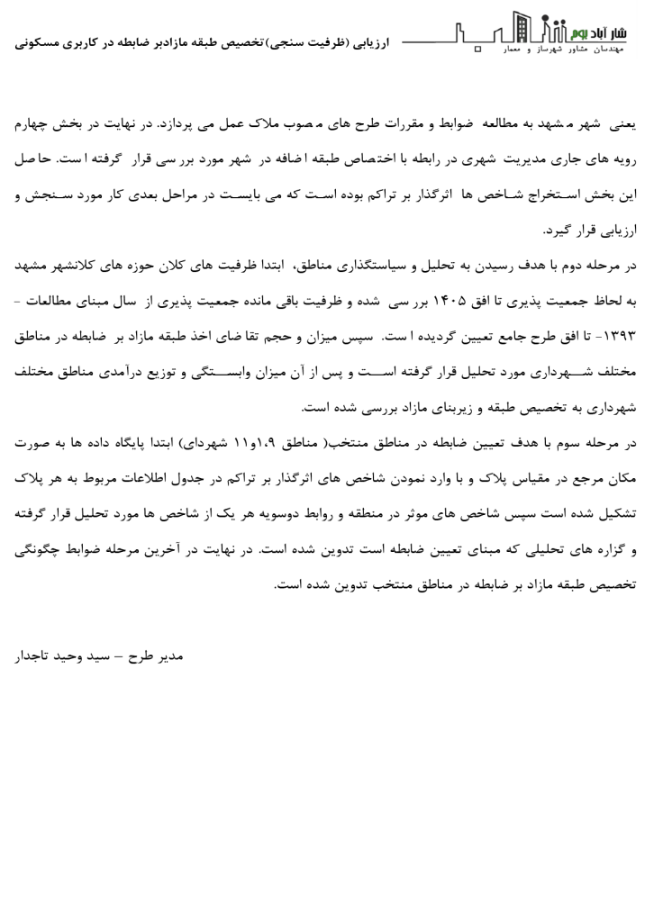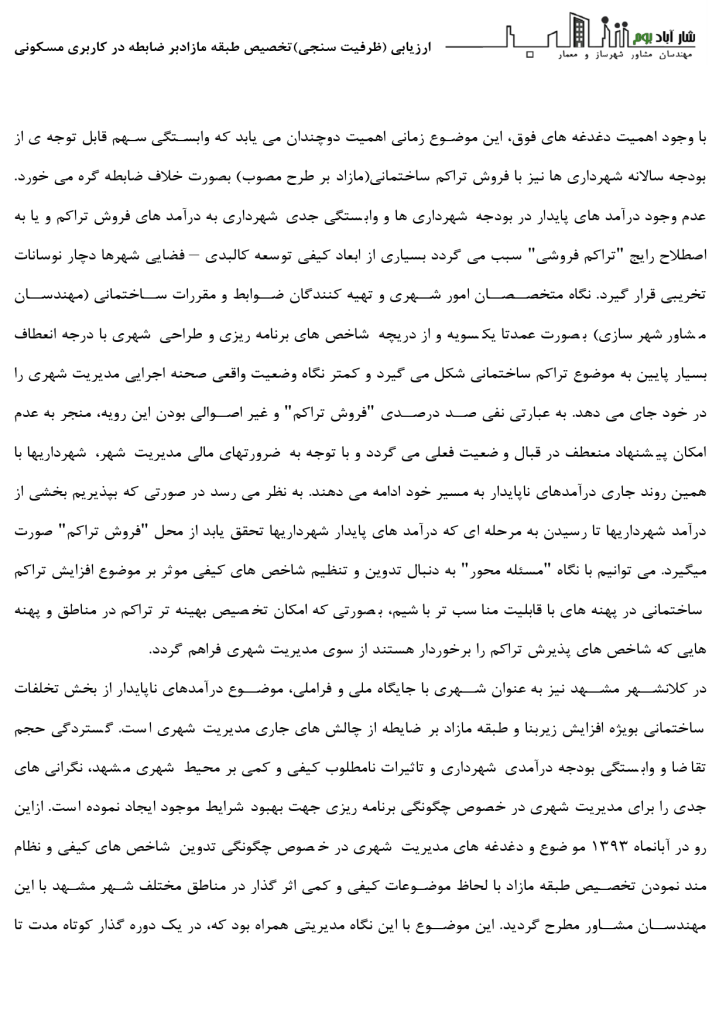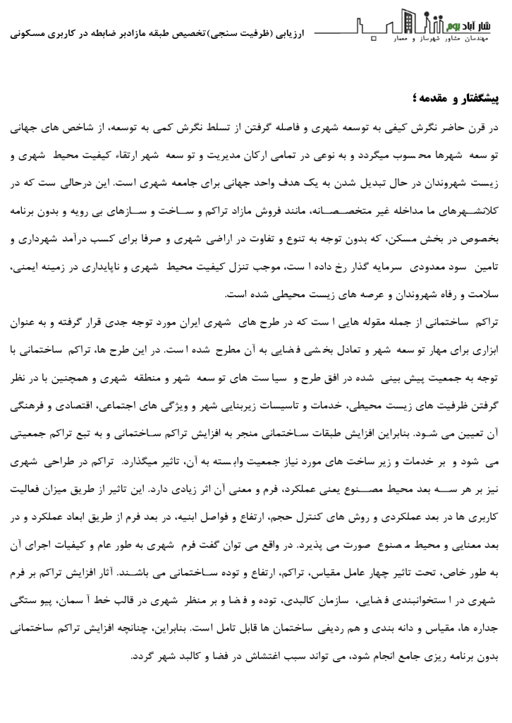 امکان سنجی(ظرفیت سنجی) تخصیص طبقه مازاد بر ضابطه در کاربری مسکونی