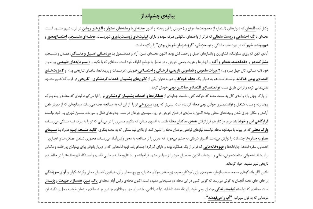 طراحی شهری محله‌ی وکیل‌آباد مشهد با رویکرد بازآفرینی شهری پایدار